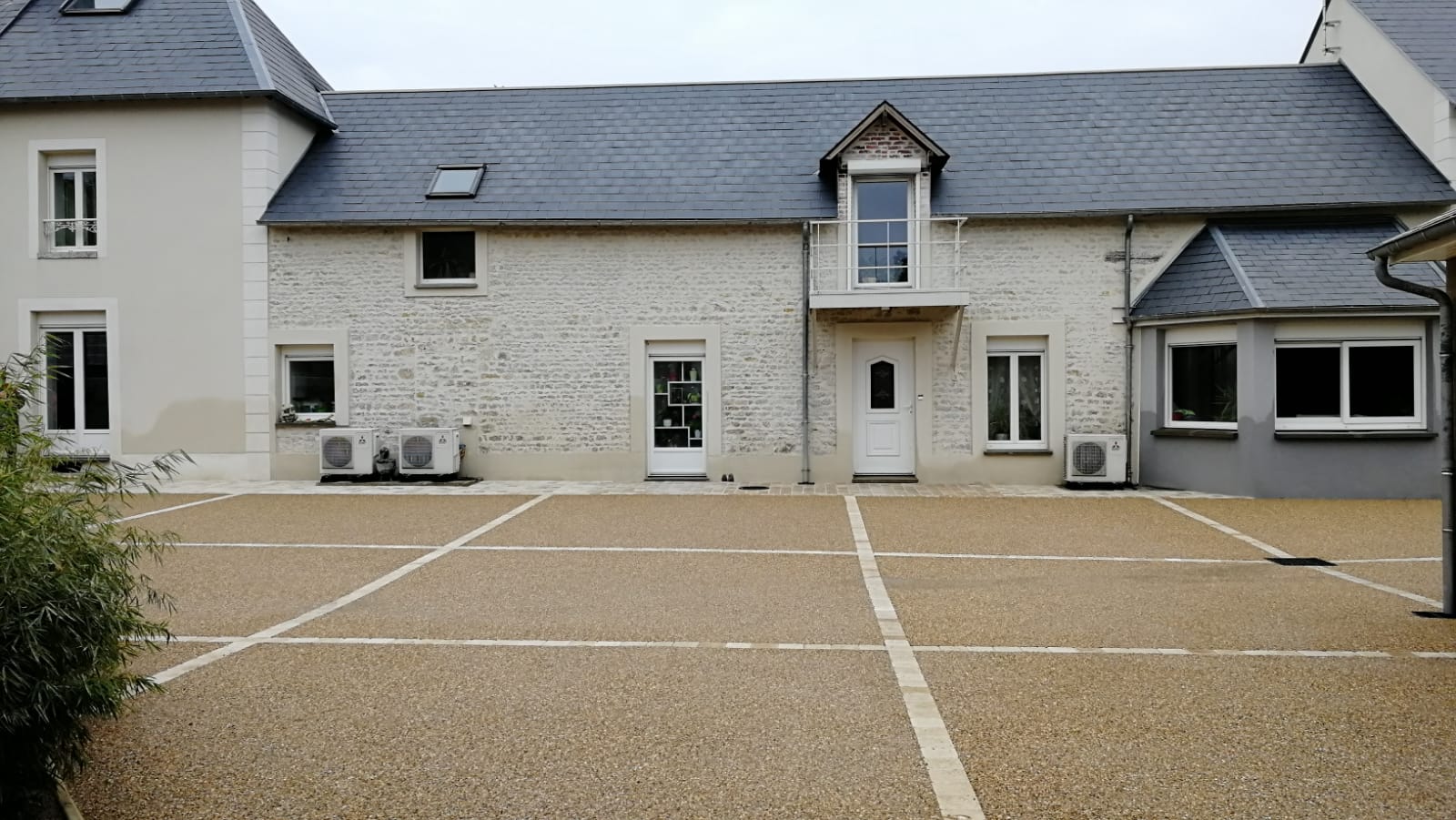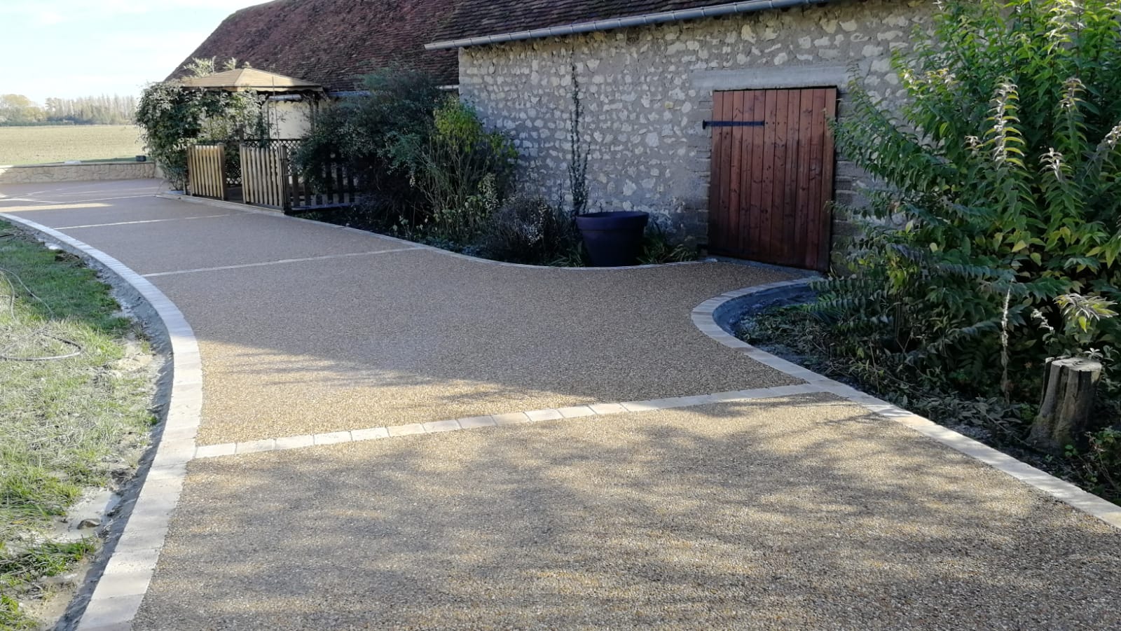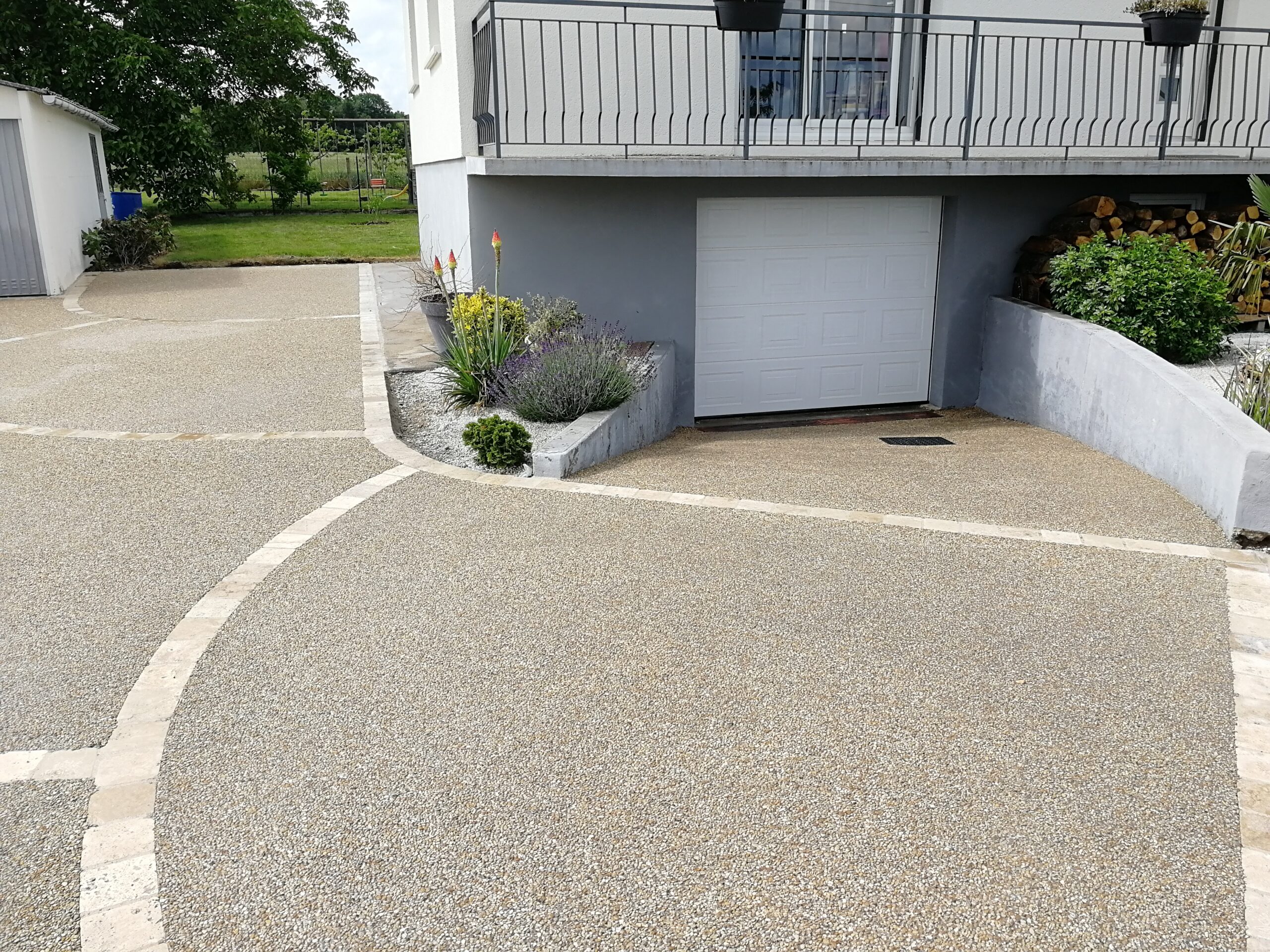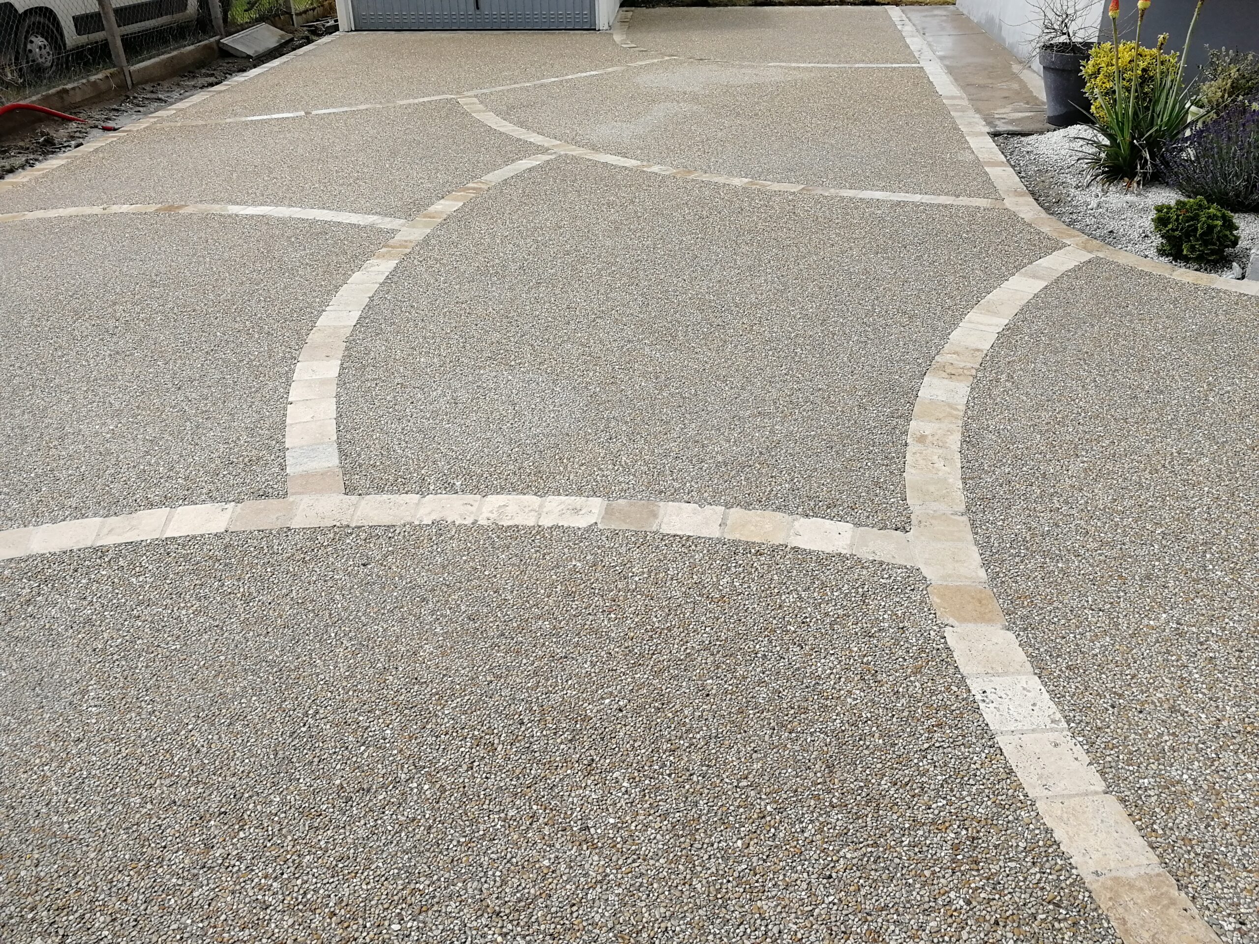À la fois très esthétique, antidérapant, résistant et facile d’entretien, il offre de nombreuses possibilités de personnalisation. En l’associant à des pavés ou à des bordures, vous pouvez créer un aménagement extérieur unique et harmonieux. L’association d’une teinte claire et de granulats met en valeur un rendu naturel et moderne.